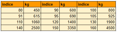 Nel caso dell’indice 91, la gomma può sostenere fino a 615 kg. Consulta la tabella degli indici di carico in basso per capire il valore corrispondente al tuo pneumatico.